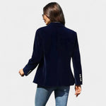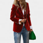 Sako Andrea s jemným sametovým povrchem je dokonalým kouskem pro ženy, které chtějí působit elegantně a sebevědomě v každé situaci. Díky preciznímu střihu s jednořadým zapínáním, ostrým klopám a jemně vyztuženým ramenům vytváří lichotivou siluetu, která se hodí jak k džínům, tak i k elegantnějším outfitům. Zlaté knoflíčky na rukávech dodávají celku sofistikovaný detail.