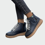 Sportovní boty v černé barvě s moderním a mladistvým designem. Mají šňůrky v světlé šedé barvě, které vytvářejí elegantní kontrast, a boční zip pro snadné obutí. Měkká vnitřní podšívka poskytuje pohodlí, zatímco odolná protiskluzová podrážka zajišťuje stabilní chůzi. Ideální pár pro každodenní neformální nošení s nádechem stylu.