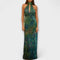Přijměte krásu umění s Monet Maxi šaty, inspirovanými ikonickým obrazem Clauda Moneta "Iris" (1914-17). Tyto ohromující šaty zachycují živou podstatu kvetoucích kosatců v klidné zahradě, ukazující jemné odstíny měkké modré, fialové a zelené, které se bezproblémově prolínají.