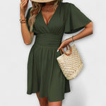 Winslet - Šaty s Nařaseným Pasem a V-Výstřihem