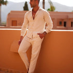 Lněný set Auckland byl navržen pro muže, kteří si cení prodyšného pohodlí a vytříbeného stylu. Vyrobeno z 100% prvotřídního lnu, tento set nabízí uvolněný, ale rafinovaný střih - ideální pro teplé počasí, dovolené nebo vysoce kvalitní volnočasové oblečení.