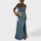 Hallie - Chic saténová maxi šaty s vysokým rozparkem