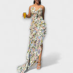 Zažijte okouzlující šumění vrstvených volánů tančících ve větru, které vytváří fascinující vzhled. Vysoké rozparky a nepravidelný lem krásně zvýrazňují linie vašich nohou, vystavují vaše půvabné křivky a dělají vás výjimečnou na jakékoli akci.