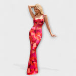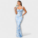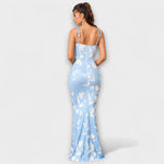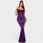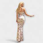 Vystupte s důvěrou v těchto ohromujících maxi šatech, které přitahují pozornost svým krásným květinovým vzorem po celém povrchu. Bez zad a spaghetti ramínka vytvářejí šik siluetu, zatímco nařasená oblast dekoltu dodává nádech sofistikovanosti.