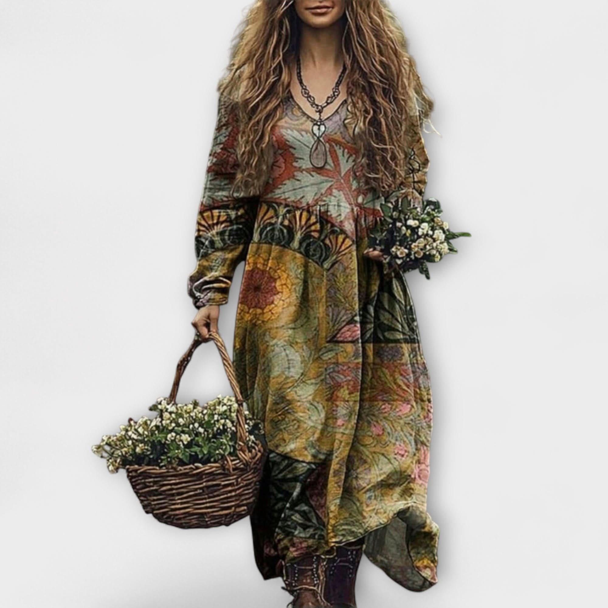 Nechte svůj duch bloudit v kráse přírodních květin s Juri | Šaty s dlouhým rukávem. Tento okouzlující kousek zachycuje podstatu snového úniku, kde se rustikální kouzlo mísí s nekonvenční elegancí. S ladným pohybem a živým, mnohobarevným květinovým vzorem snadno zvyšuje váš každodenní styl.