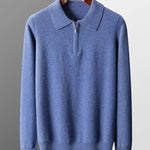 Tento elegantní polo svetr z kašmíru byl navržen pro muže, kteří ocení rafinovaný luxus a všestrannost v každodenním životě. Vyroben z prémiového kašmíru, nabízí výjimečnou jemnost, teplo a prodyšnost — ideální na vrstvení nebo samostatné nošení během chladnějších dnů.