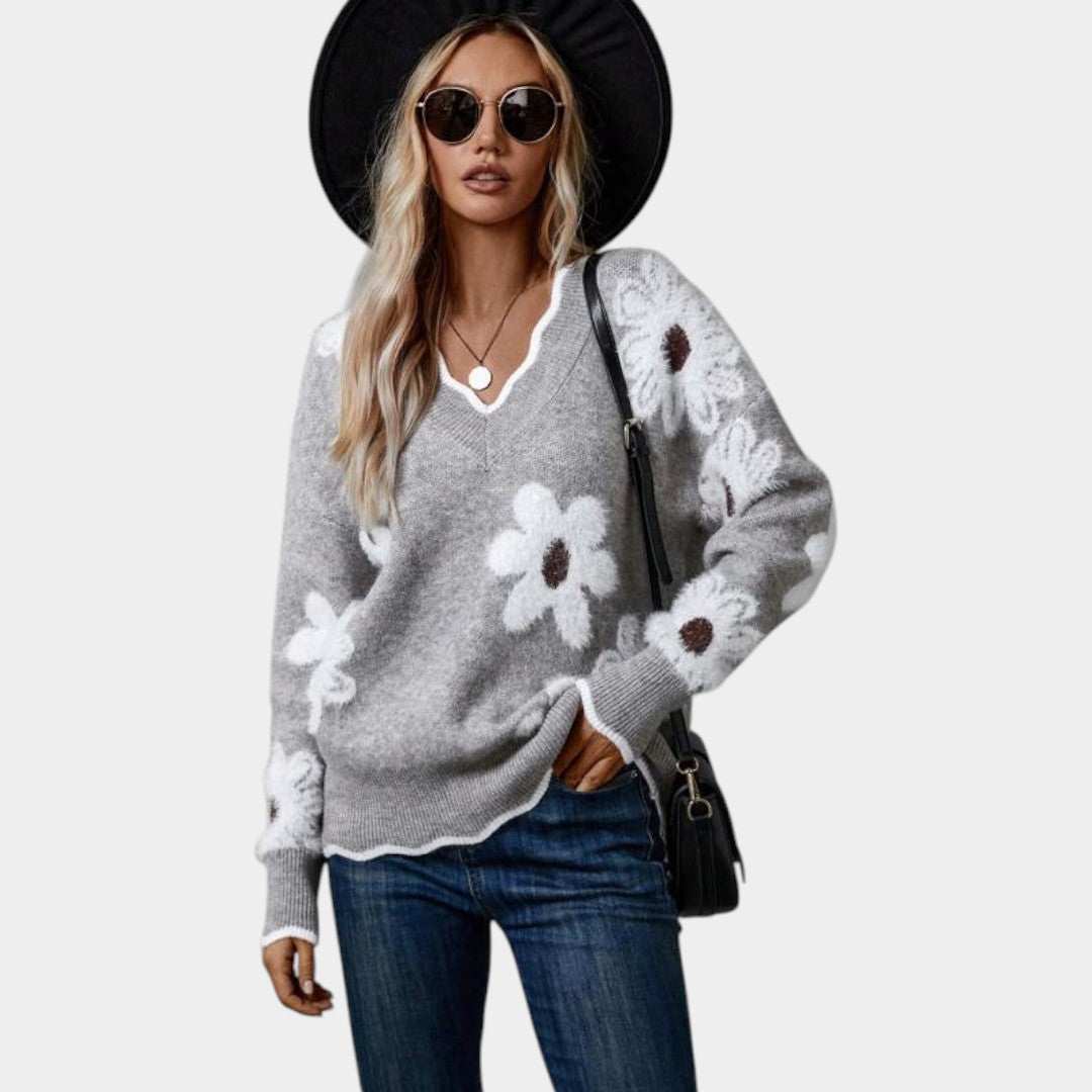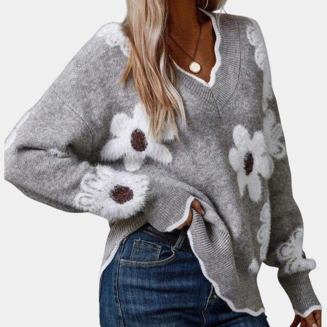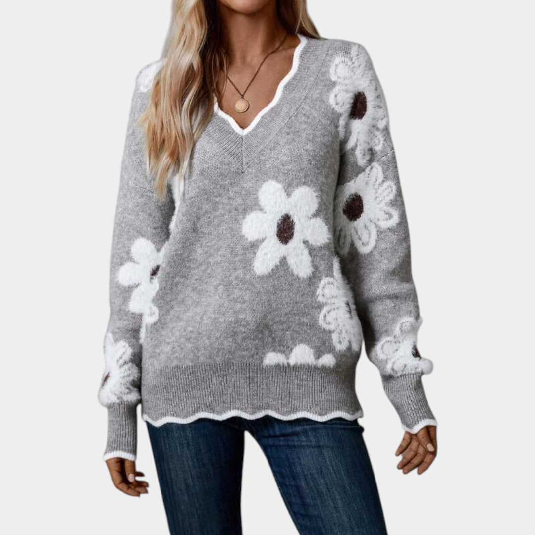 Klára – svetr s V-krkem a květinovým motivem
