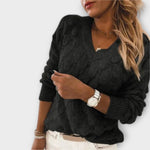 Svetr Noemier pro ženy s V-výstřihem ztělesňuje bezstarostnou eleganci a nadčasový komfort. Se svým lichotivým V-výstřihem a volným střihem nabízí tento svetr dokonalou kombinaci stylu a pohodlí. Ať už pro každodenní nošení, do kanceláře nebo na relaxační víkendové výlety – Noemier je vždy správná volba.